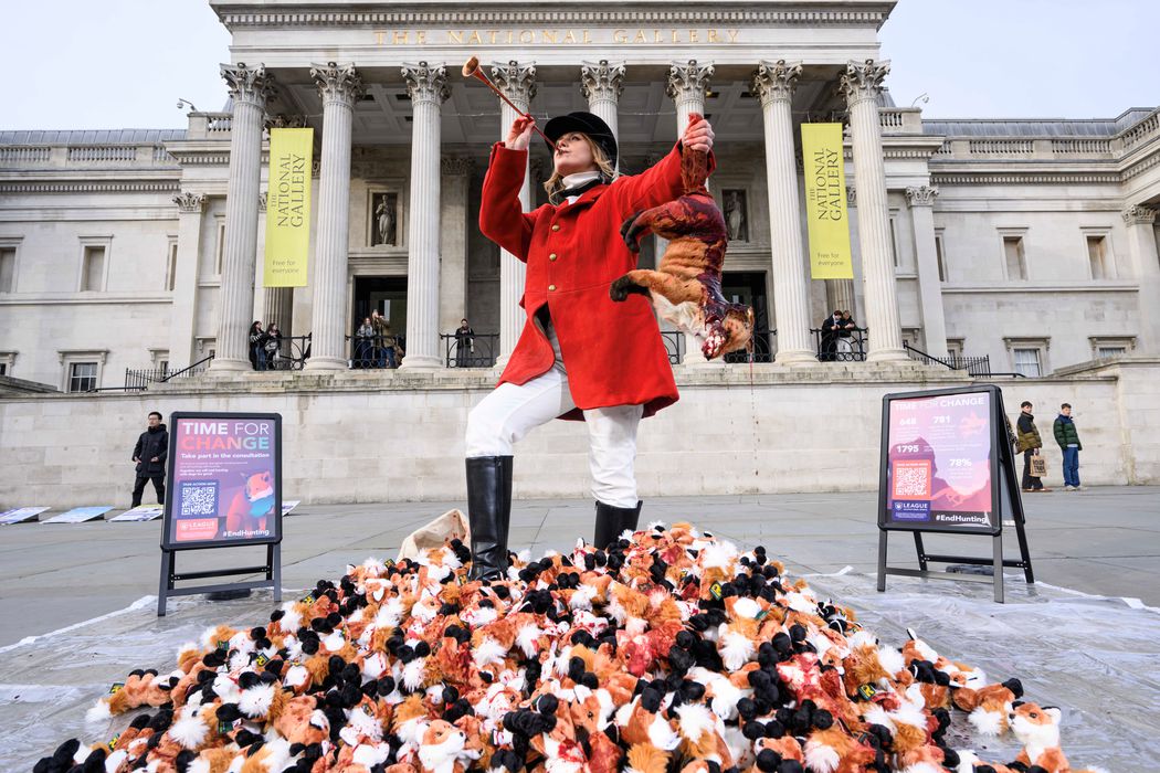 In London and Birmingham, powerful public events exposed the scale of illegal hunting still taking place. A League ‘hunter’ piled 648 bloodied fake foxes in Trafalgar Square and central Birmingham – one for every report received of a fox being chased by hunts since this government took power. It was a visible reminder that foxes are still paying the price while loopholes remain.