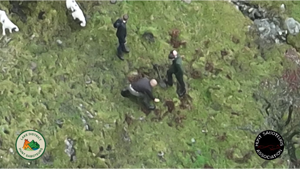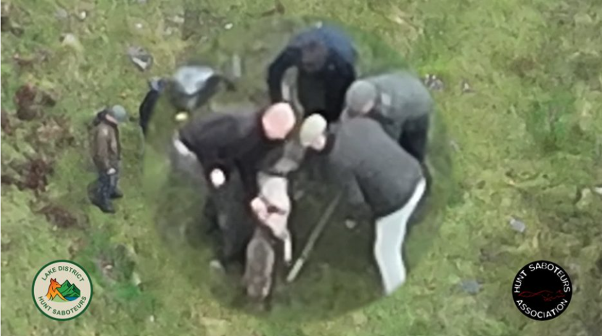 Drone footage captured by the Lake District Hunt Saboteurs appears to show the Coniston Foxhounds pursuing a fox across land within the national park before the animal then goes to ground.