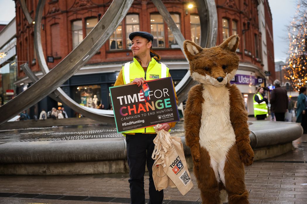 “Chasing and killing mammals with dogs has no place in today’s society and it’s time for change. We have taken to the streets of Belfast today to ask people to sign the petition and show support that the cruel and wanton killing of wild animals must end.